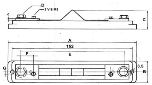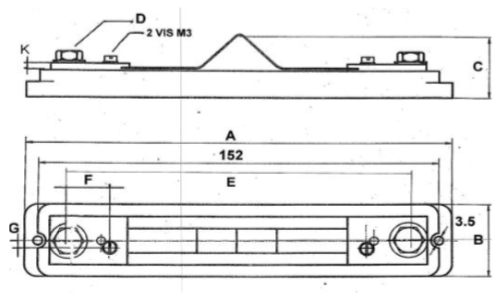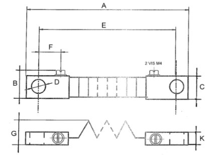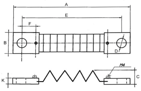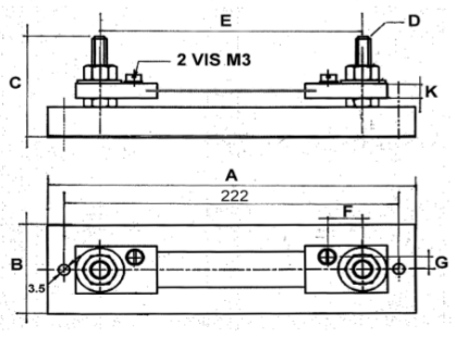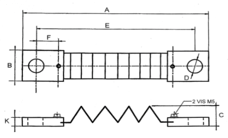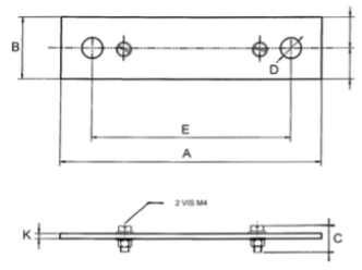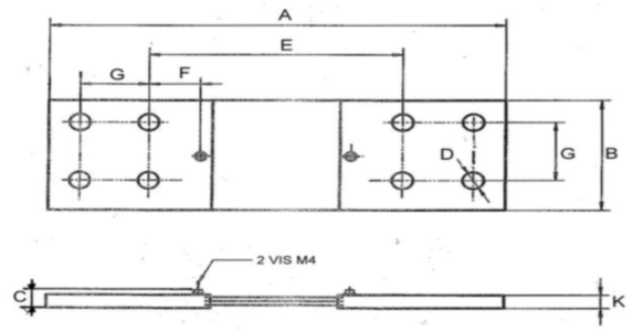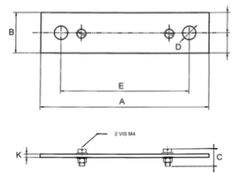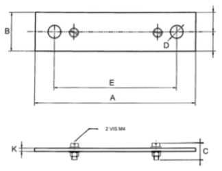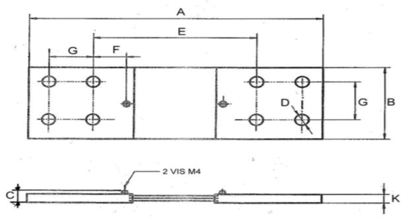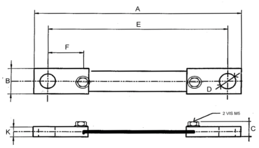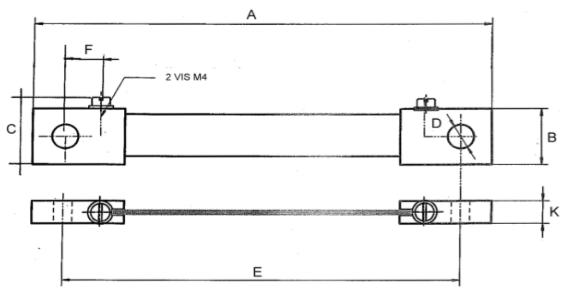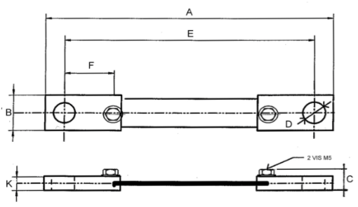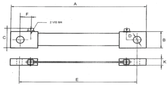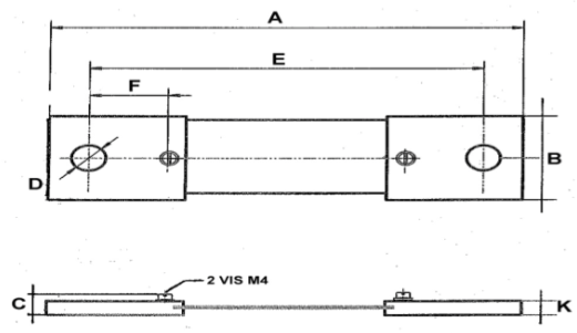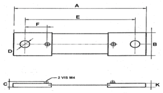 Plan technique d'un shunt de mesure de 50 mV, classe 0,5 et 1, calibre de 30 ampères à 200 ampères