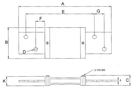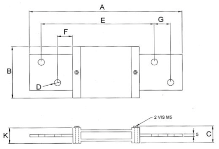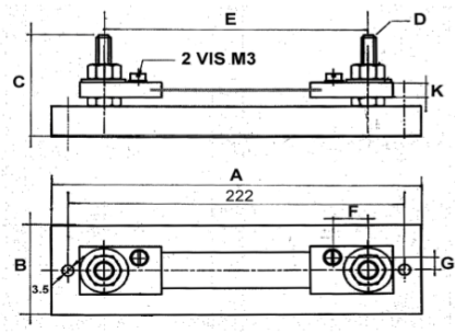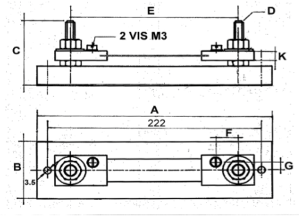 Plan technique d'un shunt de mesure de 50 mV, classe 0,5 et 1, calibre de 1 ampères à 30 ampères