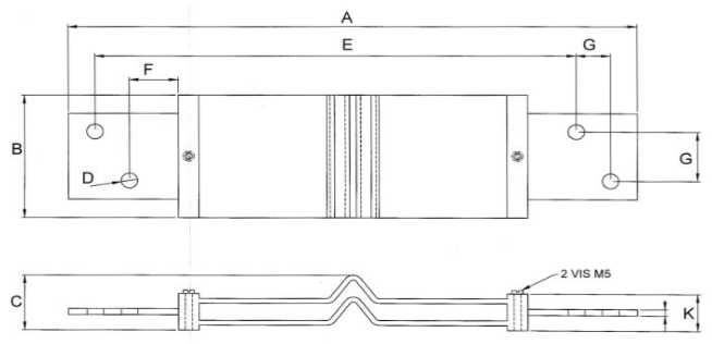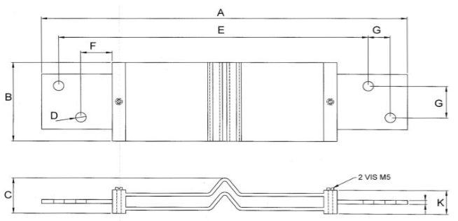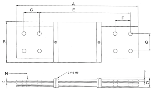 Plan technique d'un shunt de mesure de 50 mV, classe 0,5 et 1, calibre de 800 ampères à 6000 ampères