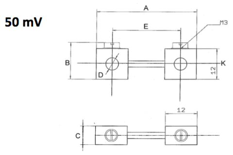 Pour ce type de shunts la chute de tension la plus courante est de 50 mV.